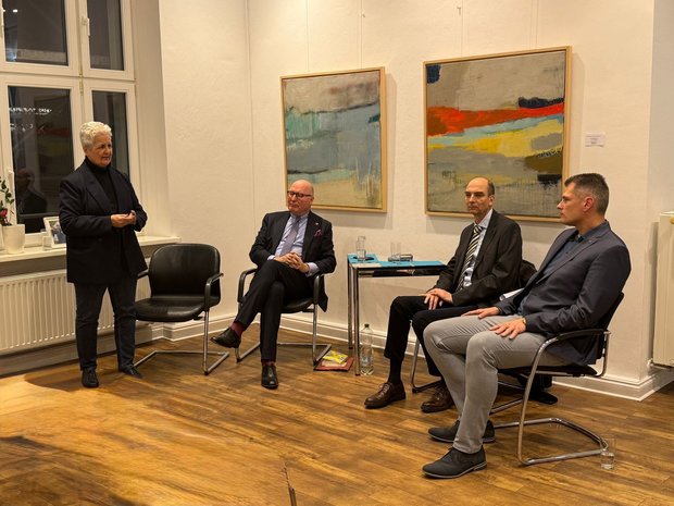Die Vernissage der Ausstellung „Botanics“ im Bürgerbüro von Dr. Claudia Wein bot am 14. November einen warmen und gut besuchten Auftakt. Viele Gäste nutzten die Gelegenheit, mit den Künstlerinnen Sarah Schultz und Josephine Riemann über ihre unterschiedlichen, aber gut zusammenpassenden Arbeiten zu sprechen. Inhaltlich prägt die Nähe zum Botanischen Garten die Ausstellung: Pflanzen erscheinen als stille Begleiter, Wissensspeicher und kulturelle Symbole. Während Schultz’ Malerei botanische Formen in träumerische, emotionale Landschaften verwandelt, reflektiert Riemann auf Objektleinwänden, wie Natur in Alltagsbildern und KI-Motiven dargestellt wird. „Botanics“ zeigt das enge Geflecht von Natur und Kultur und ist noch bis zum 22. Januar 2026 nach Anmeldung zu besichtigen.